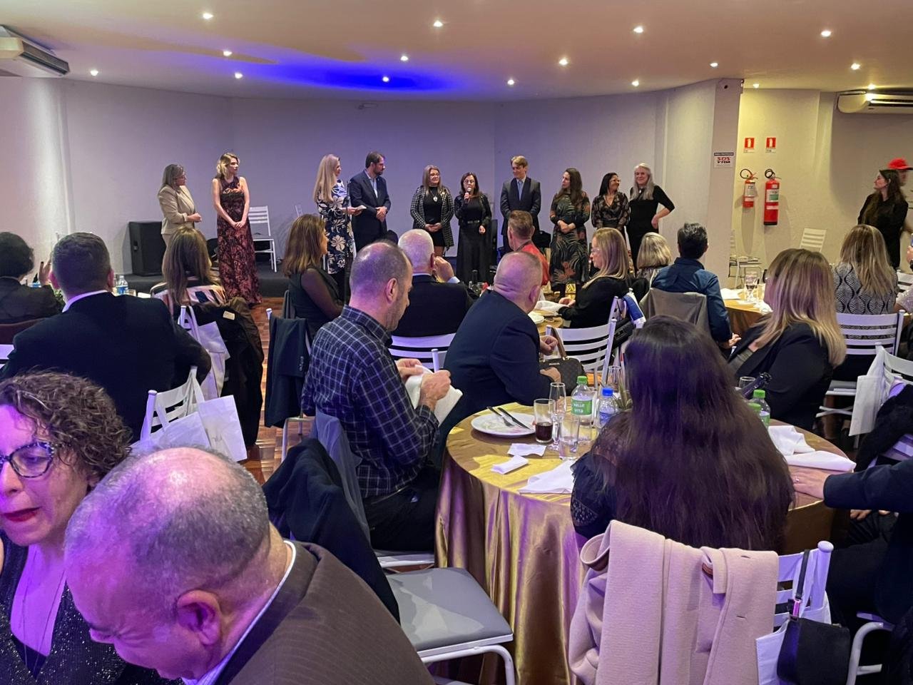 Mais de 150 corretores de imóveis e representantes de entidades ligadas ao mercado imobiliário estiveram presentes em jantar de comemoração ao Dia do Corretor de Imóveis no clube Caixeiros Viajantes em Porto Alegre no dia 28 de agosto.